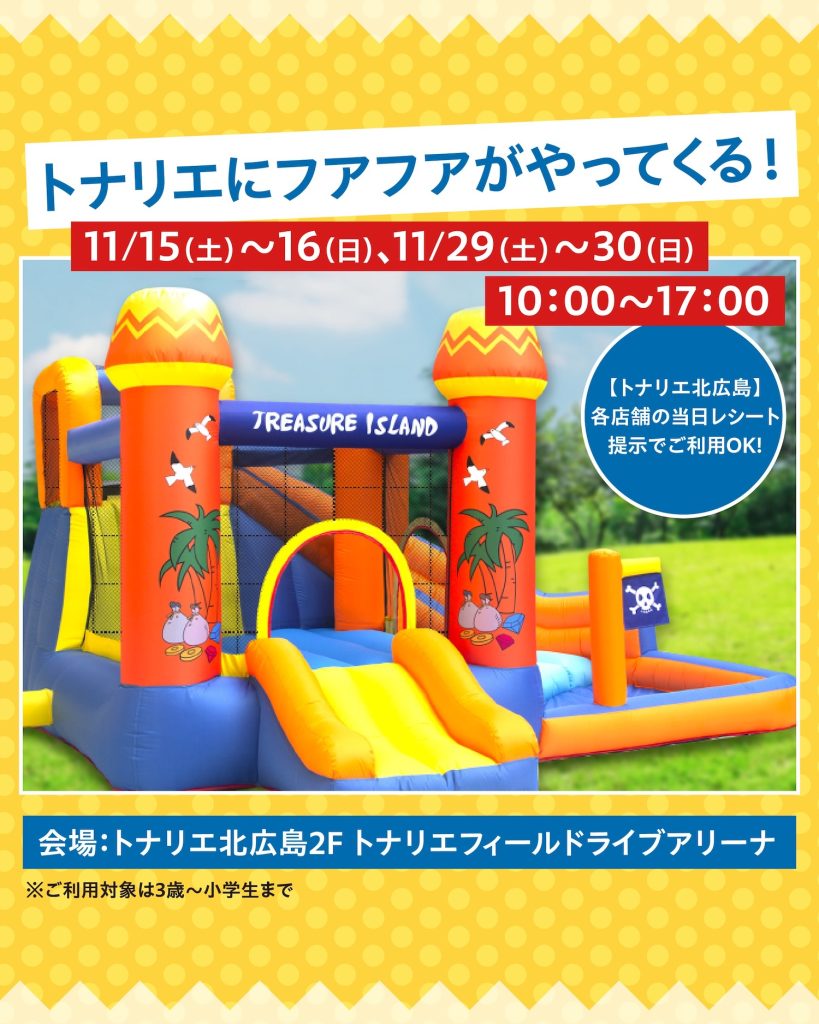 お子さまに大人気の「フアフア遊具」が【11/15(土)~16(日)、11/29(土)~30(日)】の4日間でトナリエに出現!