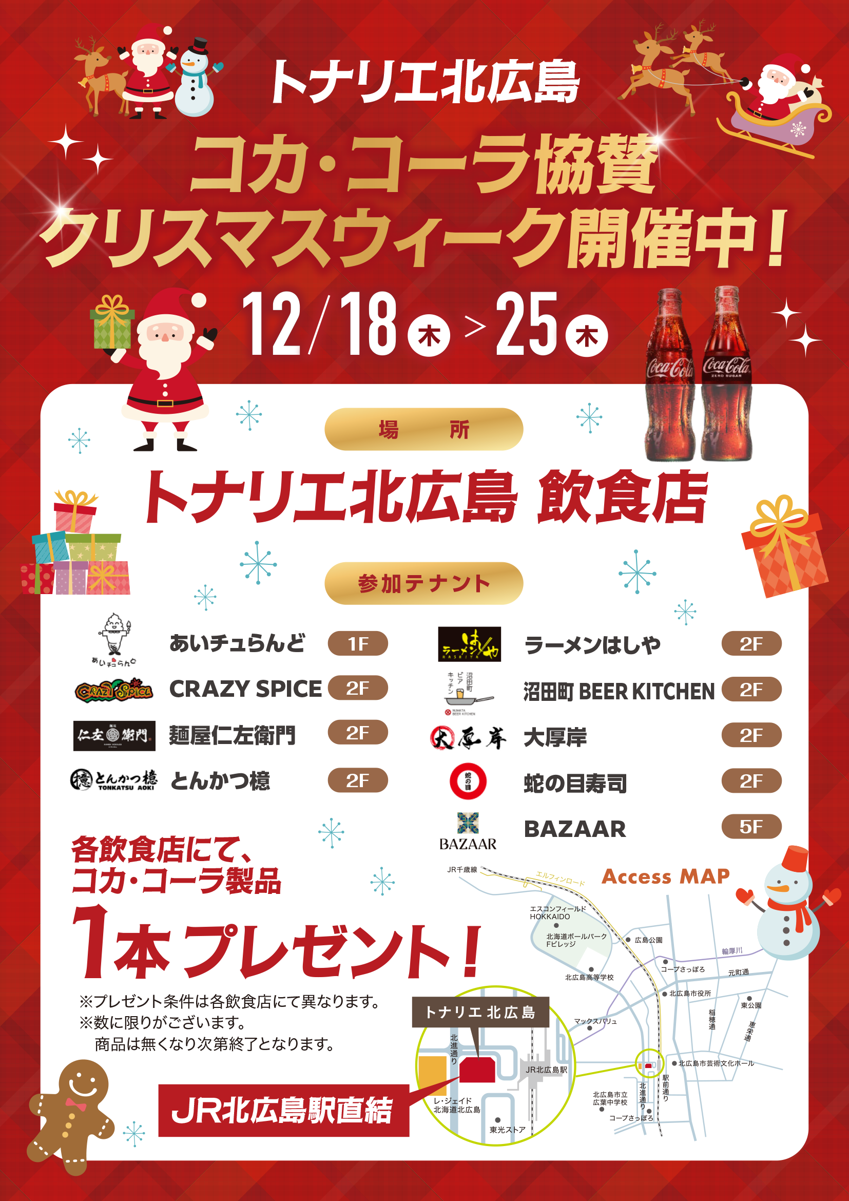 館内の対象飲食店にてコカ・コーラ製品をプレゼント!
