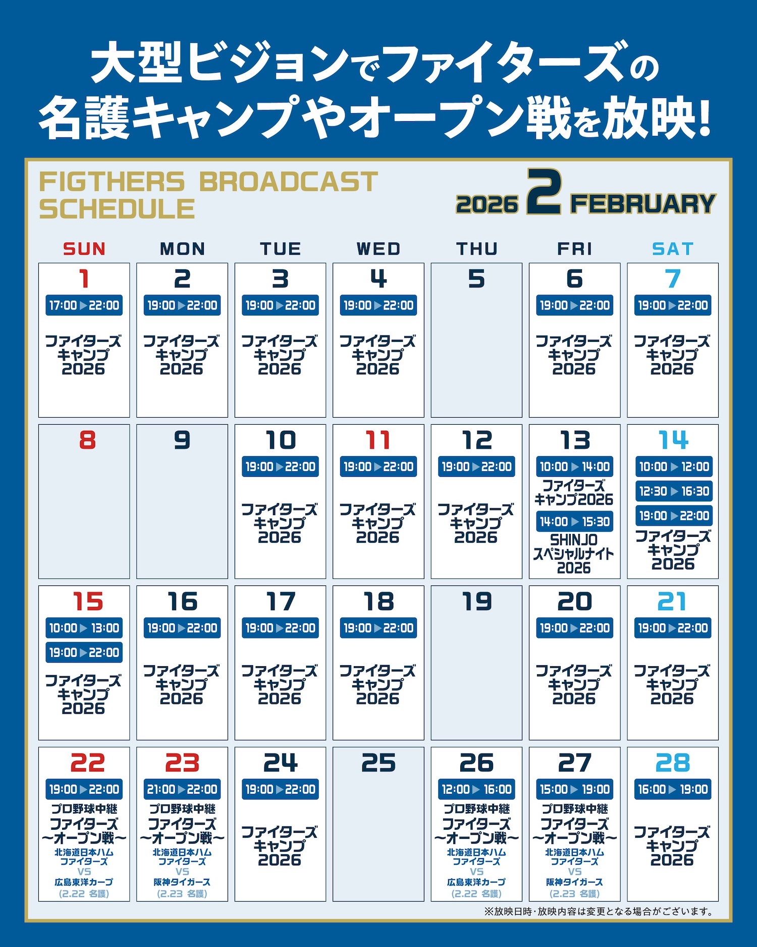 ファイターズ名護キャンプ2026&オープン戦を放映!